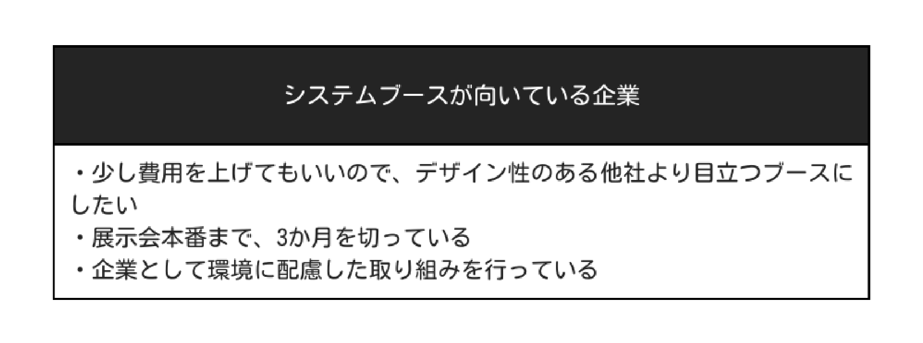 システムブースは、以下のような企業におすすめのブースです。
