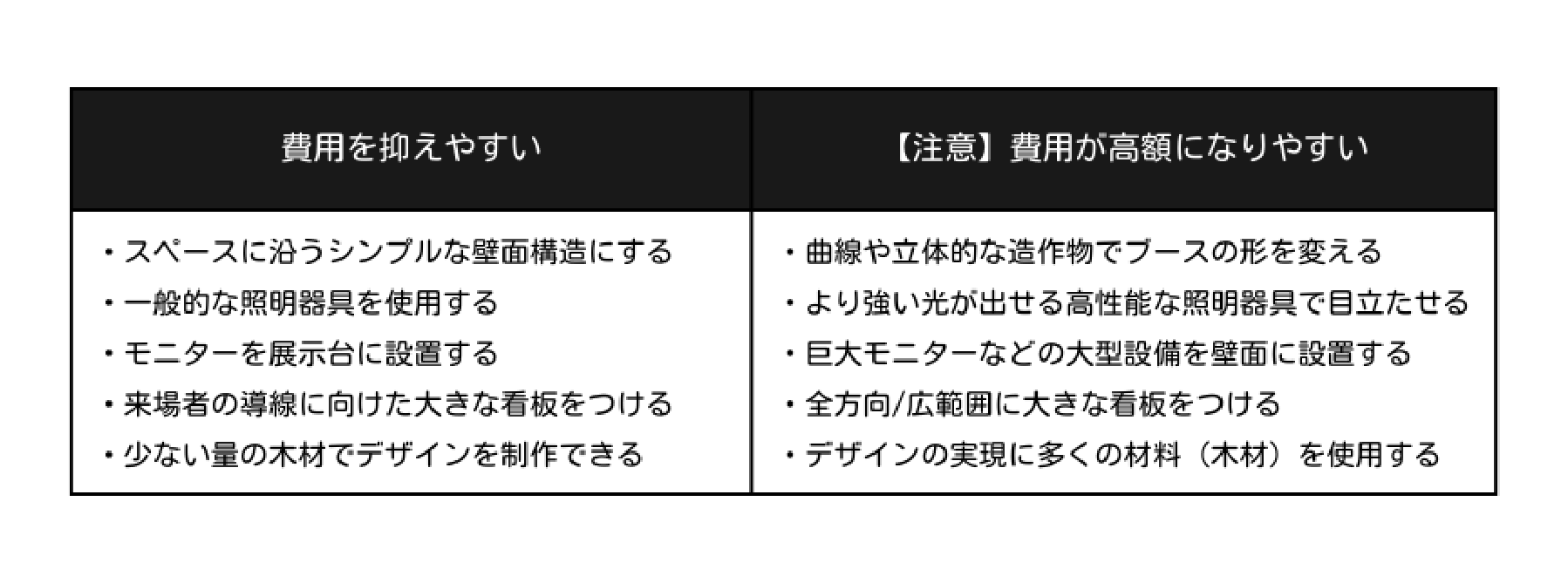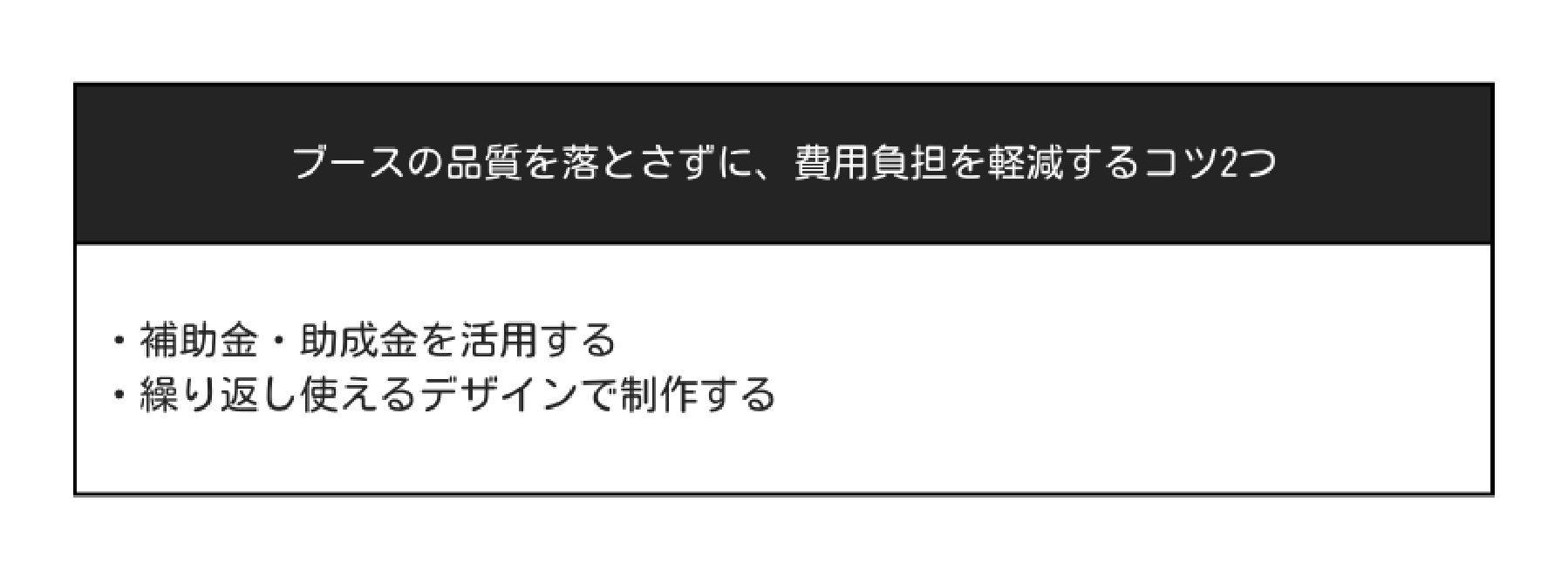 ブースの品質を落とさずに費用の負担を軽減するコツを2つ紹介します。