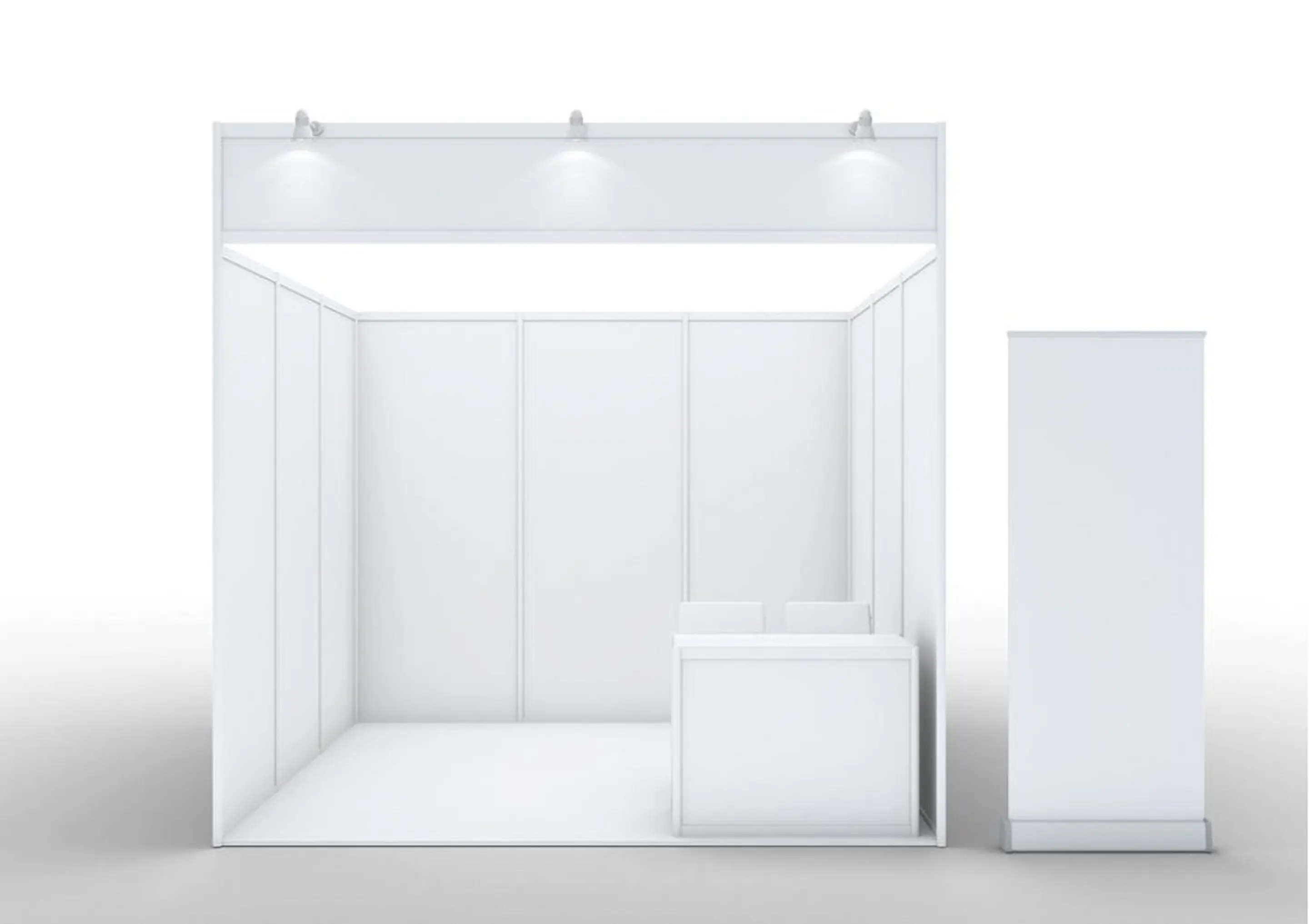 主催者指定のブース制作会社が施工を一括して行うため、他2つの方法よりもブース制作の費用を抑えられることが特徴です。事前に申し込んでおくと、以下のような基本設備を出展スペースに用意してもらえます。