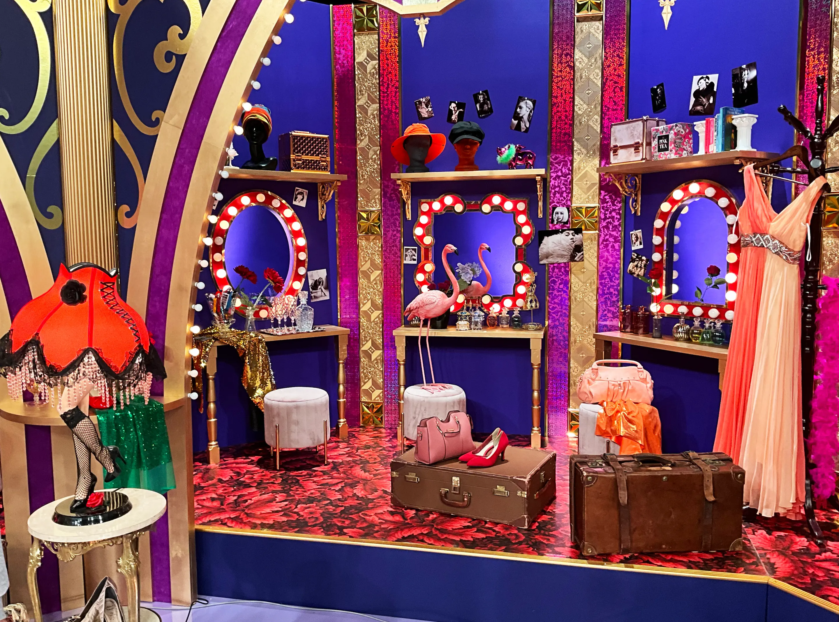 上田と女が吠える夜がさらに深化した番組。 キャバレーの楽屋で、メイクや着替えをしながらお喋りをする女性たちをイメージ。 上手の化粧台の女優ミラーの部分はカメラの映り込みなどを考え本物の鏡は使わず、抜けにして反対側にも空間を作り、対称になるよう飾りを入れ鏡のように見せています。 下手には「 DEEP」のネオンを作成し、賑わり街の中にある芝居小屋のような雰囲気を作りました。
